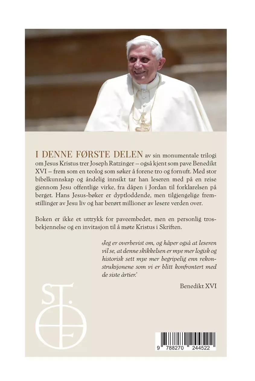 I denne første delen av sin monumentale trilogi om Jesus Kristus trer Joseph Ratzinger – også kjent som pave Benedikt XVI – frem som en teolog som søker å forene tro og fornuft. Med stor bibelkunnskap og åndelig innsikt tar han leseren med på en reise gjennom Jesu offentlige virke, fra dåpen i Jordan til forklarelsen på berget. Hans Jesus-bøker er dyptloddende, men tilgjengelige fremstillinger av Jesu liv og har berørt millioner av lesere verden over.