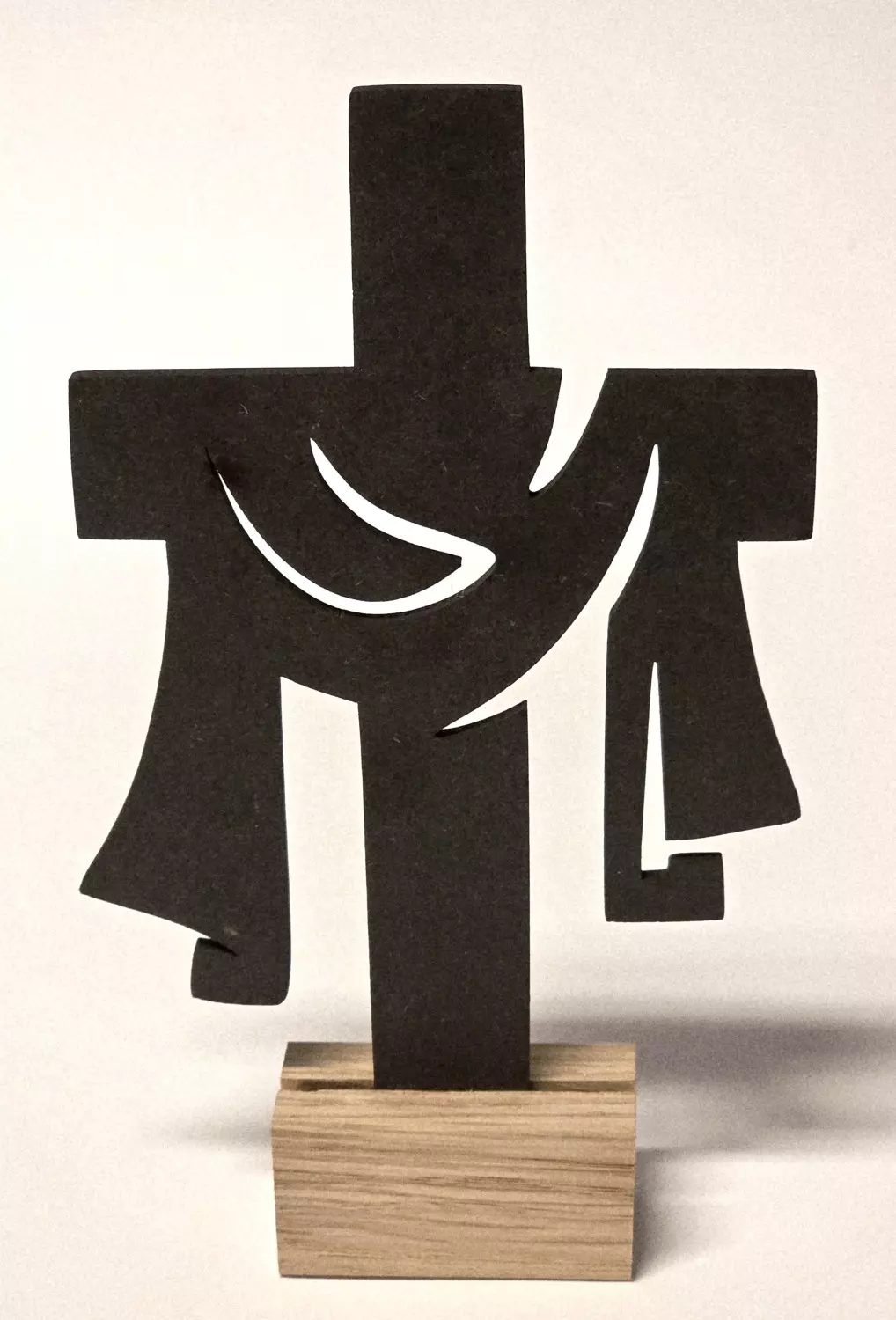 Kors på sokkel m/klede, mørkt tre, 15 cm