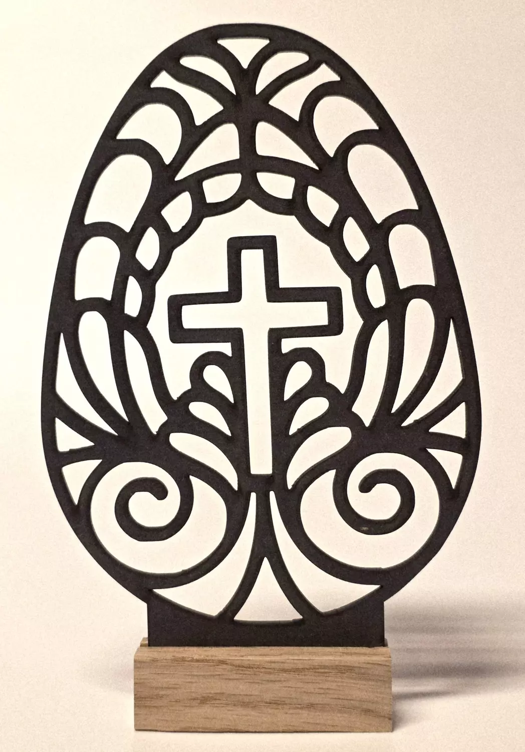 Påskeegg m/kors på sokkel, mørkt tre, 18 cm